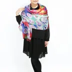 生地の向こうに透けるトップスや素肌が美しく見える、まるでメイクの仕上げに使うパウダーのようなストール。肌に付かず離れずの質感になっています。絶妙なボリューム感と美しいシルエットも他とは違う大きな魅力です。