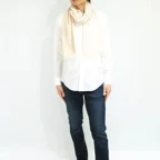 ごく薄手なのに首周りをバランスよく包む程よいボリューム感があり、空気を含んで暖かいので、シーズンを問わず一年を通して使うことができます。
