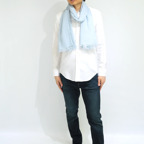 ごく薄手なのに首周りをバランスよく包む程よいボリューム感があり、空気を含んで暖かいので、シーズンを問わず一年を通して使うことができます。