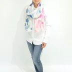大判サイズのストールで肩から羽織る使い方もできます。春夏の日除けや室内の冷房対策としても使いやすくなっています。