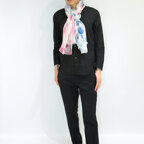 大判サイズのストールで肩から羽織る使い方もできます。春夏の日除けや室内の冷房対策としても使いやすくなっています。
