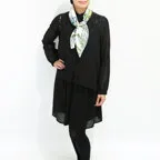 しっとりとしたやわらかい生地感で、肌に沿うような質感に仕上がっています。狙ったシルエットを出しやすく、取り扱いがしやすいスカーフです。