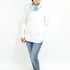 65cm×65cmの小判スカーフで、アスコットタイのようにシャツやブラウスの中におさめて使うこともできます。室内でも巻いたままでいられるので使いやすくなっています。