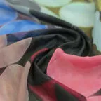 しっとりとしたやわらかい生地感で、肌に沿うような質感に仕上がっています。狙ったシルエットを出しやすく、取り扱いがしやすいスカーフです。
