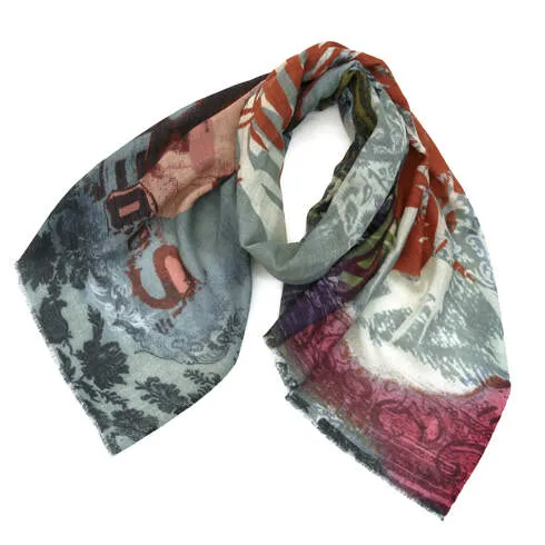スタンダートな大判サイズで巻いても羽織っても、どちらも使いやすいタイプです。特に羽織は全体の印象がパッと華やかに、エレガントな雰囲気に変化します。