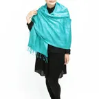 鮮やかなターコイズブルーが印象的なストール。驚くほどの美しい発色でアクセント効果抜群の一枚です!