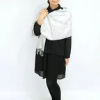 大人にふさわしい気品を漂わせる上質な素材感。シルクの存在感が際立つ洗練ストールです。