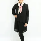 しっとりとしたやわらかい生地感で、肌に沿うような質感に仕上がっています。狙ったシルエットを出しやすく、取り扱いがしやすいスカーフです。