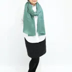 200cm×70cm大判サイズで、巻きでも羽織でもどちらも使いやすいストールです。上半身をすっぽりと覆うことができるため、トップスを気にせず合わせることができます。