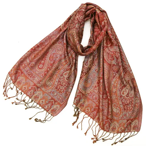縦糸と横糸に別色を挟んだこだわりのデザイン。パシュミナの持つ自然で美しい質感を際立たせる一枚です。