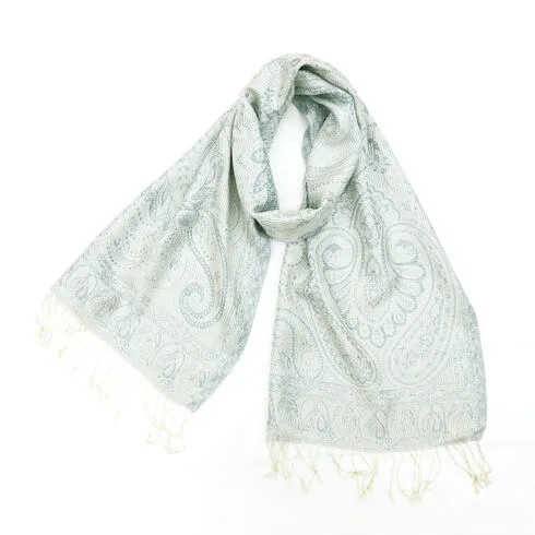 このカシミヤストールには最も繊細なインドカシミール地方ラダック産カシミヤ糸(パシュミナ)が使われています。そのため手織りカシミアストールの中でも最も目が細く繊細な生地となっています。薄くて軽くてやわらかい最上級の一枚です。