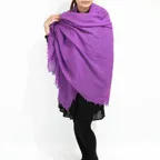 非常に大きなショールサイズで、広げて羽織れば上半身をすっぽりと覆うことができます。縦横の長さも十分にあるため、巻き方の自由度が広がります。程よいボリューム感と立体感を簡単につくることができるため、一巻きでこなれた印象になります。面積もあるので、真夏の室内での冷房対策や膝掛けとしても使いやすくなっています。