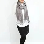 バランスがよいミドルサイズのため、ボリュームを抑えつつ様々な場面で活用できます。巻きでも羽織でもどちらでも使いやすくなっています。