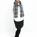 生地感よりカジュアルな普段使いにも、少しフォーマルなシーンでも使いやすいタイプです。スタイルや場所を問わず合わせることができる優れたストールです。