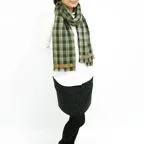 生地感よりカジュアルな普段使いにも、少しフォーマルなシーンでも使いやすいタイプです。スタイルや場所を問わず合わせることができる優れたストールです。