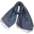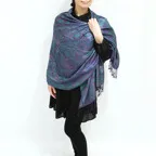 スタンダートな大判サイズで巻いても羽織っても、どちらも使いやすいタイプです。特に羽織は全体の印象がパッと華やかに、エレガントな雰囲気に変化します。