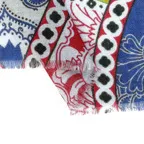 トラディショナルなペイズリー柄にあそび心あるデザインを加えた一枚。コントラストの効いた色合いでゆるっと巻くだけでアクセント効果が高くなっています!