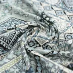 筆(カラム)を用いた模様は染色にはない繊細な色合いを生み出し、唯一無二のデザインに仕上がっています。さらにこの生地に熟練された職人がアーリ手刺繍を施しています。刺繍糸は全てシルク100%素材。色とりどりの刺繍糸を用いて表現された生地は美しい輝きを放ち、凹凸のない滑らかな質感を実現します。こうした完成した手仕事のショールはまさに芸術品。遠目にも伝わる高級感はあなたの装いに洗練された気品を与えてくれます。