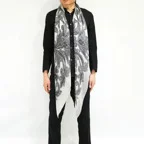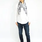 モダンアートのような躍動感のあるペイズリー柄。サイズの大きなショールタイプでゆるっと巻くだけで立体感のある表情を作り出すことができます。