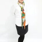 アーティスティックなデザインと発色の良さが際立つ一枚。シンプルに使うだけでアクセント効果が抜群のストールに仕上がっています。