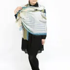 空気のように軽いコットンストール。左右が異なるアシンメトリー柄で、巻き方によって様々な表情をお楽しみいただけます♪