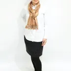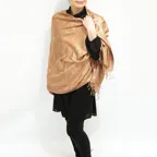 スタンダートな大判サイズで巻いても羽織っても、どちらも使いやすいタイプです。特に羽織は全体の印象がパッと華やかに、エレガントな雰囲気に変化します。
