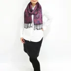 自然な陰影が美しい。高級感のあるシルクストール。合わせやすさとアクセント効果のバランスが絶妙な一枚です。