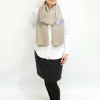 バランスの良い大判サイズで、巻きでも羽織でもどちらも使いやすいストールです。特に羽織は全面に施された刺繍が美しく輝き、サッとあしらうだけで全体の印象を大きく変えてくれます。
