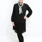 65cm×65cmの小判スカーフで、アスコットタイのようにシャツやブラウスの中におさめて使うこともできます。室内でも巻いたままでいられるので使いやすくなっています。