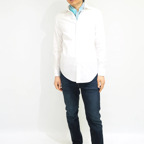 65cm×65cmの小判スカーフで、アスコットタイのようにシャツやブラウスの中におさめて使うこともできます。室内でも巻いたままでいられるので使いやすくなっています。