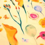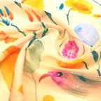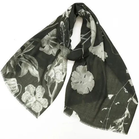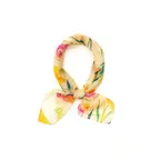 華やかさとスタイルアップの両方を叶えるおしゃれなデザイン。優しい色使いで扱いやすいスカーフです。