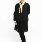 65cm×65cmの小判スカーフで、アスコットタイのようにシャツやブラウスの中におさめて使うこともできます。室内でも巻いたままでいられるので使いやすくなっています。