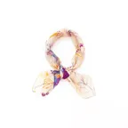 65cm×65cmの小判スカーフで、アスコットタイのようにシャツやブラウスの中におさめて使うこともできます。室内でも巻いたままでいられるので使いやすくなっています。