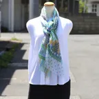 スタンダードな大判サイズで巻きでも羽織でもどちらでも使いやすくなっています。特に春夏の日除けや冷房対策としても使いやすく、ファッションのアクセントとしてなら一年中使うことができます。