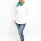 65cm×65cmの小判スカーフで、アスコットタイのようにシャツやブラウスの中におさめて使うこともできます。室内でも巻いたままでいられるので使いやすくなっています。