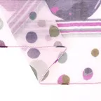 小ぶりなスクエアサイズで、アスコットタイのようにシャツやブラウスの中におさめて使うこともできます。室内でも巻いたままでいられるので使いやすくなっています。