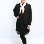 65cm×65cmの小判スカーフで、アスコットタイのようにシャツやブラウスの中におさめて使うこともできます。室内でも巻いたままでいられるので使いやすくなっています。