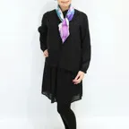 65cm×65cmの小判スカーフで、アスコットタイのようにシャツやブラウスの中におさめて使うこともできます。室内でも巻いたままでいられるので使いやすくなっています。