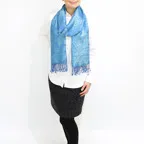 スタンダートな大判サイズで巻いても羽織っても、どちらも使いやすいタイプです。特に羽織は全体の印象がパッと華やかに、エレガントな雰囲気に変化します。