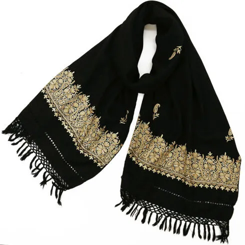 全面に施されたアーリ刺繍が美しく、品の良い女性らしい装いを叶えてくれます。カジュアルな普段使いはもちろん、フォーマルなシーンにも使いやすく、さらに和装とも相性が非常に良くなっています。スタイルや場所を問わず合わせることができる優れたストールです。