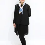 65cm×65cmの小判スカーフで、アスコットタイのようにシャツやブラウスの中におさめて使うこともできます。室内でも巻いたままでいられるので使いやすくなっています。