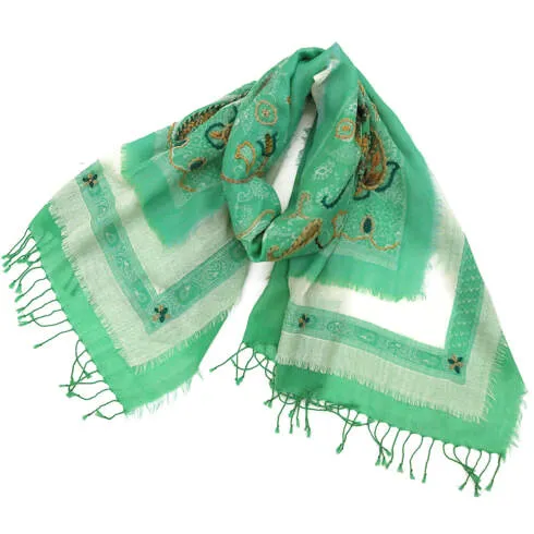 素材感とデザインより春・夏に最適なストールです。もちろんファッションのアクセントとしてなら一年中使うことができます。