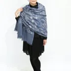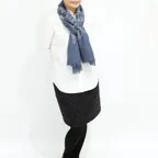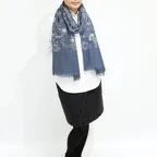 スタンダードな大判サイズで、首に巻くことはもちろん、室内でのひざ掛けにも、肩から羽織る使い方もできます。特に羽織は上半身を覆えるので、着ている服を気にせず合わせることができます。