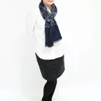 スタンダードな大判サイズで、首に巻くことはもちろん、室内でのひざ掛けにも、肩から羽織る使い方もできます。特に羽織は上半身を覆えるので、着ている服を気にせず合わせることができます。