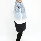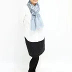スタンダードな大判サイズで、首に巻くことはもちろん、室内でのひざ掛けにも、肩から羽織る使い方もできます。特に羽織は上半身を覆えるので、着ている服を気にせず合わせることができます。
