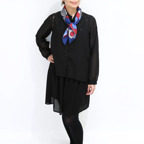 どの角度から見ても見栄える。一枚で完成するアートなスカーフ。小ぶりサイズでもしっかりとした存在感で装いのアクセントに最適です。