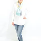 マルチカラーのアクセントショール。空気みたいに軽い着け心地。カジュアルな普段使いにぴったりです。