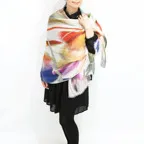 大判サイズのストールで肩から羽織る使い方もできます。春夏の日除けや室内の冷房対策としても使いやすくなっています。