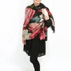生地感よりカジュアルな普段使いにも、少しフォーマルなシーンでも使いやすいタイプです。スタイルや場所を問わず合わせることができる優れたストールです。