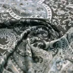 糸そのものの美しい光沢感を活かし、ジャカード織機で製作された繊細で上品なペイズリーデザインが装いに洗練された印象を与えてくれます。